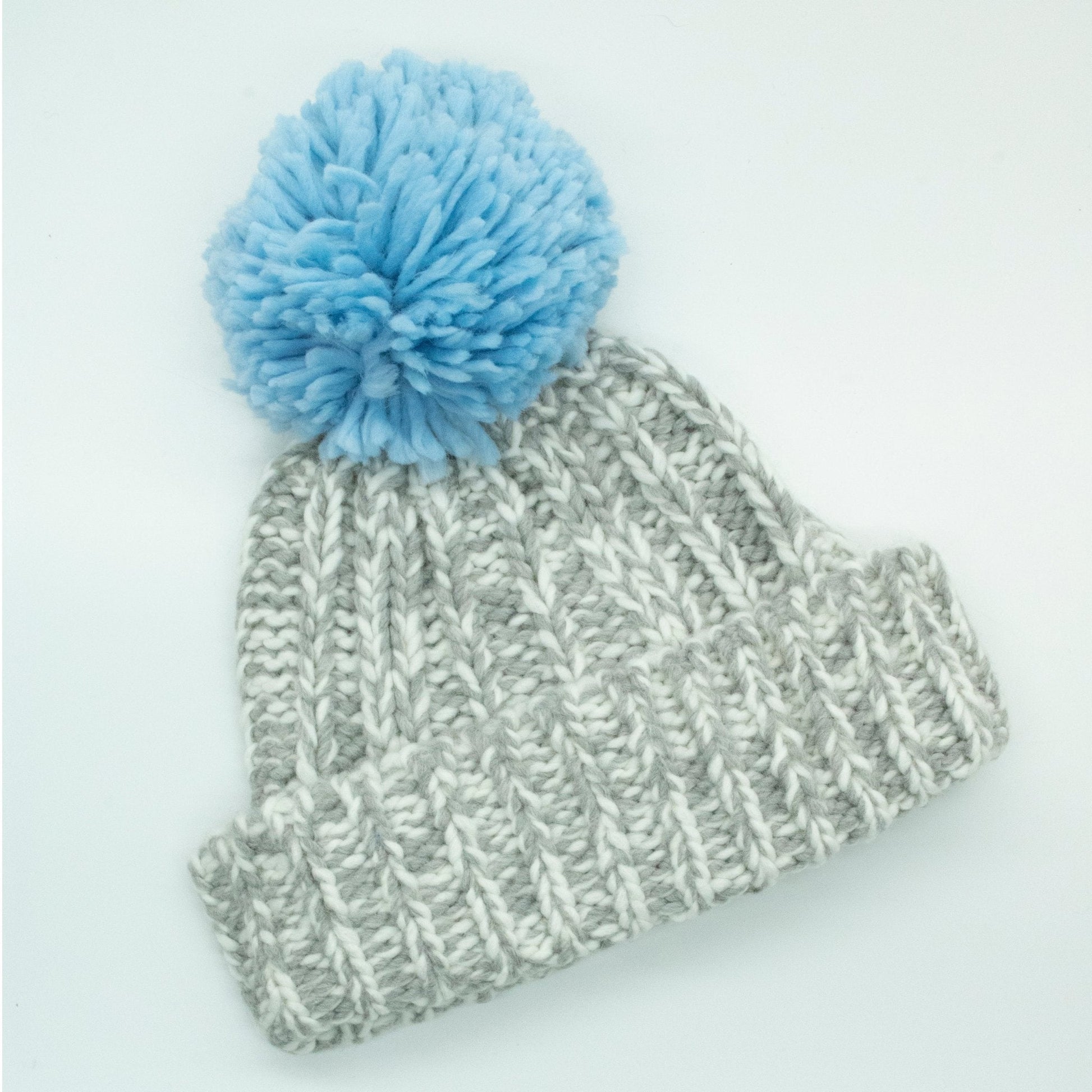 Get cozy and add a touch of fun with this chunky mélange pom pom hat. Bonus: the cuff is perfectly folded for maximum cuteness.